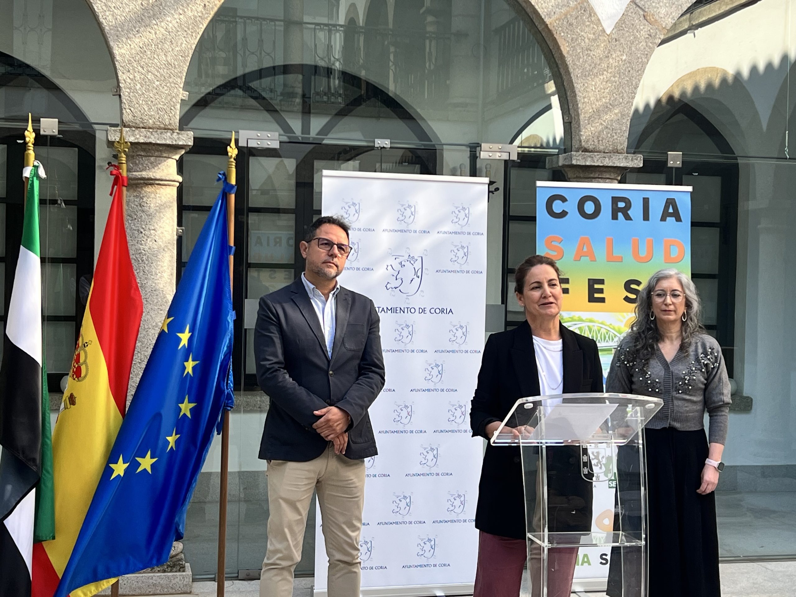 El ‘Coria Salud Fest’, es un evento de salud comunitaria diseñado como un espacio abierto, participativo y dinámico que tiene como objetivo fomentar estilos de vida saludables entre la población. Así lo han manifestado en rueda de prensa ayer la alcaldesa de la Ciudad, Almudena Domingo, junto al Gerente del Área de Salud de Coria, Raúl Salcedo y la directora del IES Alagón, Isabel Vidarte. La iniciativa reunirá a instituciones, profesionales sanitarios, centros educativos, asociaciones y entidades locales en una jornada con enfoque preventivo, educativo y cercano, orientado a acercar la salud a la ciudadanía de forma accesible y atractiva.