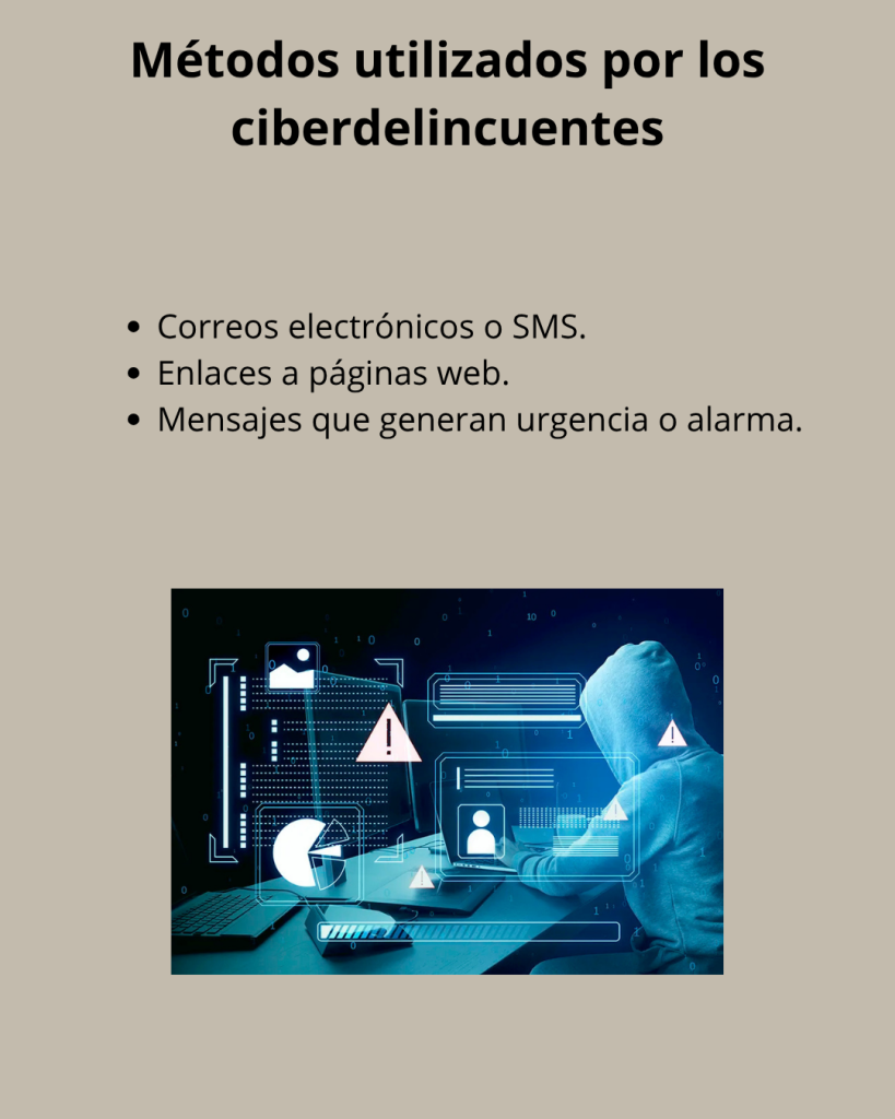 - Correos electrónicos o SMS con apariencia oficial.