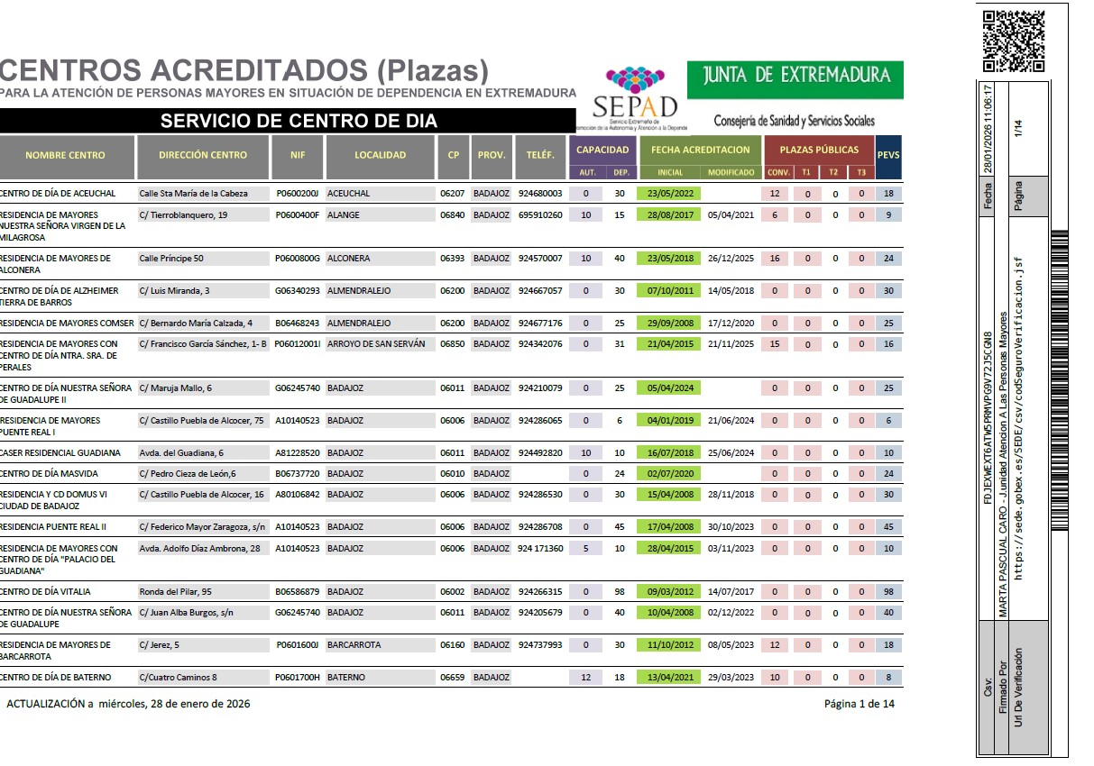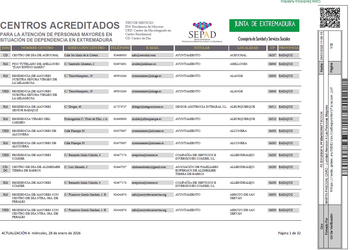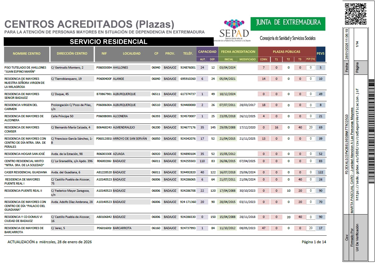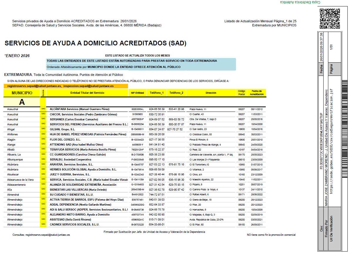 Servicios de Ayuda a Domicilio y de Promoción de la Autonomía Personal Acreditados (Enero 2026)