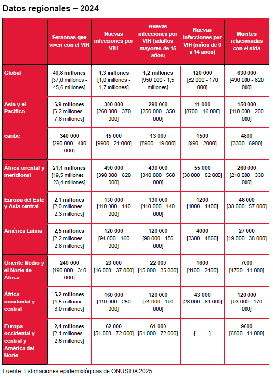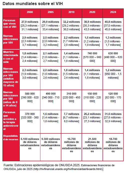 DATOS MUNDIALES SOBRE EL VIH. ONUSIDA. AÑO 2025.